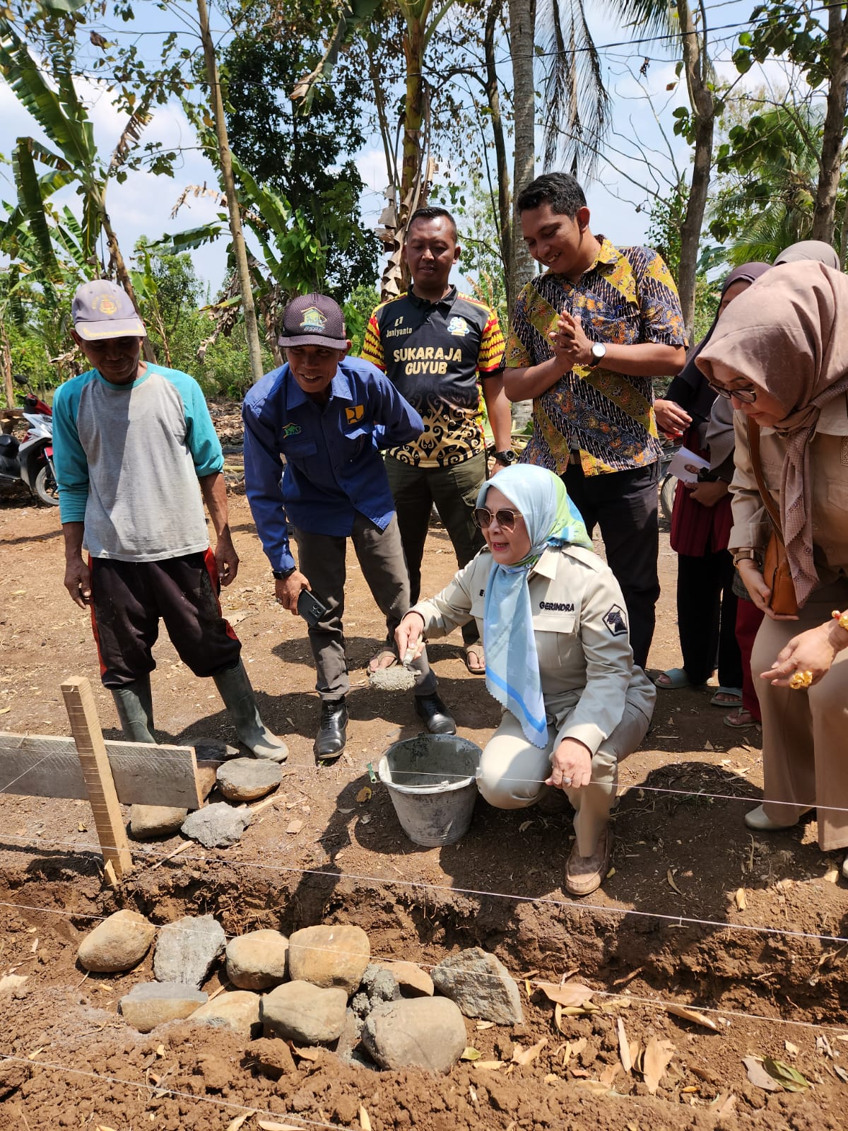 penyerahan ditandai dengan peletakan batu pertama oleh Wakil Ketua I DPRD Provinsi Lampung Elly Wahyuni, yang mewakili Anggota DPR- RI Ahmad Muzani, di kediaman salah satu warga penerima bantuan yaitu bapak Ardi, warga Desa Sukaraja.