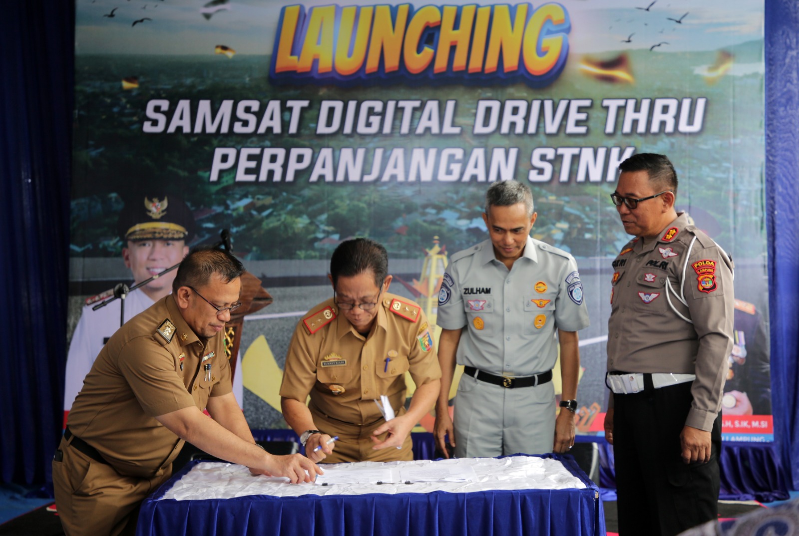 Selaku pimpinan Polda Lampung, Helmy mengapresiasi dan terima kasih setinggi-tingginya kepada seluruh pihak, utamanya kepada Bapak Gubernur yang telah mendukung terwujudnya layanan ini, termasuk Bappeda Provinsi Lampung, Ditlantas Polda Lampung, PT Jasa Raharja Lampung, Bank Daerah Pembangunan Lampung, Bank Rakyat Indonesia Cabang Lampung, serta seluruh personel di lapangan yang akan bekerja keras untuk memastikan sistem ini berjalan secara optimal.