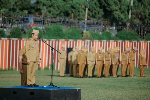 Komitmen tersebut disampaikan Sekretaris Daerah Provinsi Lampung Marindo Kurniawan saat bertindak sebagai Inspektur Upacara pada Upacara Bersama Forum Koordinasi Pimpinan Daerah (Forkopimda) Provinsi Lampung Tahun 2026 di Lapangan KORPRI, Komplek Dinas Kantor Gubernur, Bandarlampung, Senin (5/1/2026).